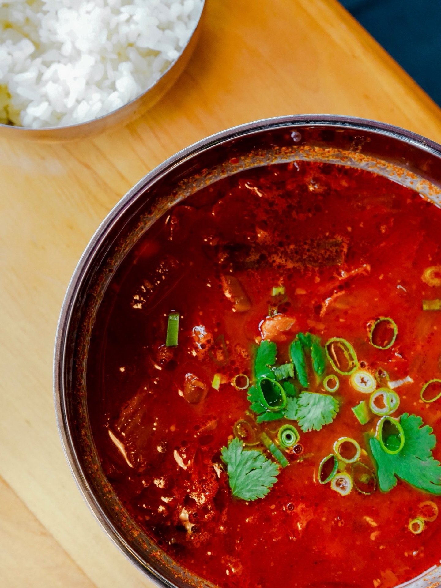 Корейська кров’яна ковбаса з рубленою свининою, рисом і пекінською капустою. Подається з соєвим соусом заправленим часником та кінзою.